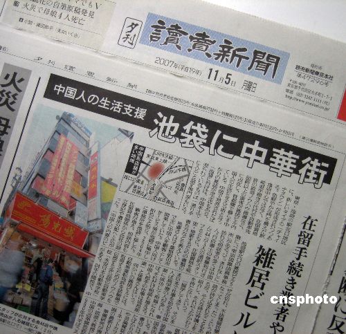 池袋新華人打中國文化牌、塑造嶄新中國形象取得成功。發(fā)行量超過1000萬份的日本《讀賣新聞》11月5日圖文并茂地的報道了池袋正在出現(xiàn)新的中華街。據(jù)介紹,越來越多的中國人匯集池袋,并展開多種經(jīng)營的創(chuàng)業(yè)活動,除了有100多家傳統(tǒng)的中國飯店以外,池袋還集中了13家華文報刊,日本首個星期日漢語角也在池袋。池袋已經(jīng)成為中國文化傳播、中日兩國交流最活躍的地區(qū)。中新社發(fā) 段躍中 攝