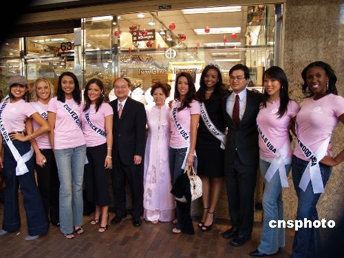 11月24日,全美華埠小姐徐仁惠與參選美國小姐的90位佳麗一起在洛杉磯走訪唐人街的華人珠寶商,并現(xiàn)場展現(xiàn)美貌和智慧。中新社發(fā) 盧威 攝