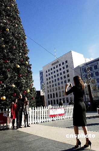 當(dāng)?shù)貢r(shí)間十二月二十五日,圣誕節(jié)的舊金山天氣晴朗。圖為一家美國(guó)人和樹立在舊金山聯(lián)合廣場(chǎng)上的巨大圣誕樹合影。中新社發(fā) 陳鋼 攝