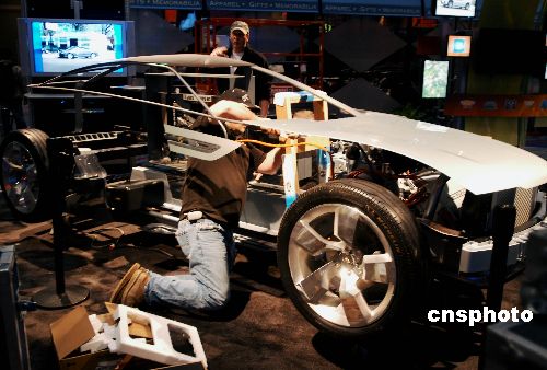 美國(guó)通用汽車(chē)一月六日在拉斯維加斯世界最大的消費(fèi)電子產(chǎn)品展上,展示環(huán)保型無(wú)排放汽車(chē)模型。中新社發(fā) 賈國(guó)榮 攝