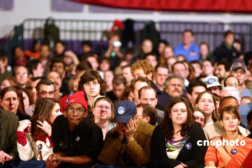 當(dāng)?shù)貢r間一月八日,美國民主黨總統(tǒng)競選人奧巴馬在新罕布什爾州民主黨初選敗給希拉里。中新社發(fā) 李靜 攝