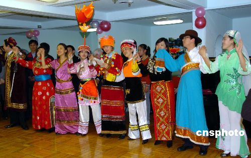 留學(xué)生代表穿著少數(shù)民族服飾表演節(jié)目。