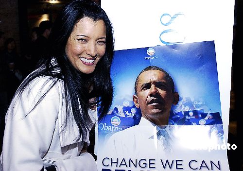 圖:美國(guó)好萊塢華裔女星胡凱莉支持奧巴馬參選總統(tǒng)
