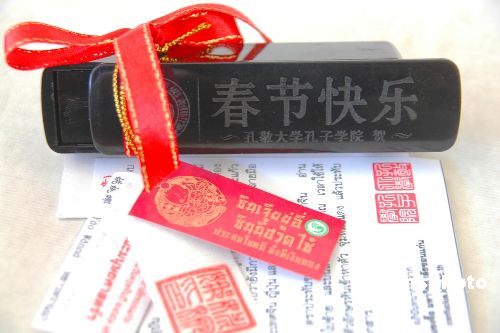 孔敬大學的校領導、各學院的院長、孔敬市的華僑領袖,以及中小學校長們都收到了來自孔子學院的禮物——一枚中國印章,上刻有他們的音譯中國名字,并附有泰文說明,說明中國名字的意義、印章的功能和歷史發(fā)展。