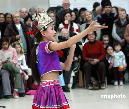 中國全國婦聯(lián)、倫敦市長辦公室和“時代中國”組委會共同舉辦的“中英婦女文化周”在倫敦開幕。當(dāng)?shù)貢r間11日下午,中國兒童中心藝術(shù)團(tuán)的演員在大英博物館大廳里的表演吸引了不少當(dāng)?shù)赜^眾。中新社發(fā) 李鵬 攝