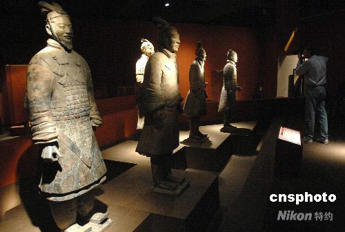 圖:中國國寶秦兵馬俑集體亮相美國加州