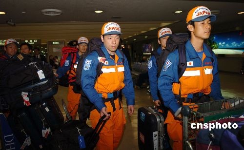 5月21日上午,前往四川地震災(zāi)區(qū)支援中國抗震救災(zāi)的日本國際緊急救援隊(duì)一行乘機(jī)回到東京,受到日本政府和在日華人華僑的歡迎。圖為抵達(dá)成田機(jī)場的日本救援隊(duì)隊(duì)員。
