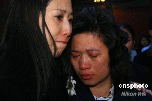 當?shù)貢r間5月21日晚,英國華僑華人在倫敦華埠舉行燭光追思會,哀悼在四川大地震中遇難的同胞。圖為出生于臺灣的莊雅蘭(左)和華人律師李貞駒(右),在追思會上緊緊相擁,淚流滿面。中新社發(fā) 李鵬 攝
