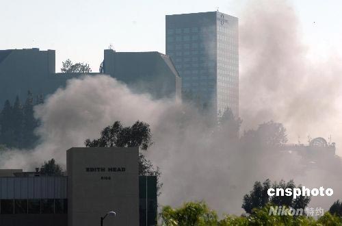 當(dāng)?shù)貢r(shí)間六月一日凌晨四時(shí)四十五分,好萊塢環(huán)球影城發(fā)生大火,一名消防員和一名警察受輕傷。一個(gè)攝影棚被焚毀,每天接待世界各地游客的環(huán)球影城主題公園“金剛”景點(diǎn)被燒,《騙中騙》、《回到未來(lái)》和《冒牌天神》等影片的部分外景設(shè)施也毀于大火,經(jīng)濟(jì)損失估計(jì)達(dá)數(shù)千萬(wàn)美元。不過(guò)環(huán)球片場(chǎng)總裁雷恩·梅耶稱(chēng),珍貴電影膠片和素材存儲(chǔ)在火場(chǎng)數(shù)百碼以外的一個(gè)地下室,因而幸免。圖為當(dāng)天下午大火仍未撲滅。中新社發(fā) 張煒 攝