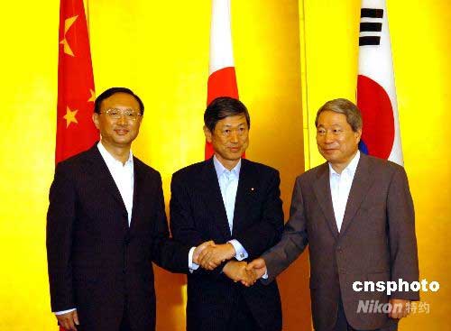 圖:中日韓三國(guó)外長(zhǎng)日本舉行共同會(huì)談
