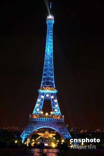 法國(guó)將于今年7月1日起擔(dān)任歐盟輪值主席國(guó)。6月30日晚,法國(guó)的標(biāo)志性建筑——巴黎埃菲爾鐵塔開(kāi)始披上了“歐盟裝”,其藍(lán)底黃星的色彩象征歐盟的旗幟。中新社發(fā) 吳衛(wèi)中 攝