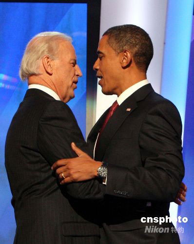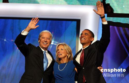 當(dāng)?shù)貢r(shí)間8月27日,美國民主黨全國代表大會正式提名伊利諾伊國會參議員奧巴馬和特拉華州國會參議員拜登為總統(tǒng)、副總統(tǒng)候選人。中新社發(fā) 李靜 攝