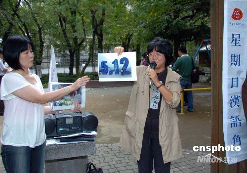 10月5日,日本自由撰稿人蘆澤禮子女士在東京漢語角介紹她剛從中國(guó)四川震區(qū)采訪的所見所聞。蘆澤禮子介紹說,在四川震區(qū)活躍著大批中國(guó)和日本的志愿者。他們?yōu)闉?zāi)區(qū)人民盡快重建家園、恢復(fù)生產(chǎn)生活,做出了可歌可泣的貢獻(xiàn)。她說,通過這次大地震,志愿者精神在中國(guó)得到進(jìn)一步普及,這對(duì)于中國(guó)今后的發(fā)展有著十分重要的意義。中新社發(fā) 段躍中 攝