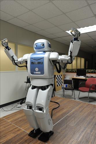 韓國(guó)科學(xué)技術(shù)研究院10月13日表示,機(jī)器人研究小組劉凡材博士開發(fā)的機(jī)器人“MARU”,可同時(shí)轉(zhuǎn)動(dòng)上下肢,并可以像人一樣靈活行動(dòng),此外,還能隨著音樂節(jié)奏跳舞。人們還可以通過遠(yuǎn)程控制,讓它作出多種人體動(dòng)作。