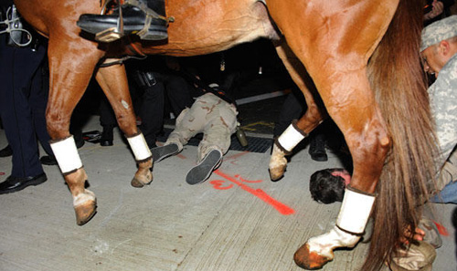 在美國紐約州的亨普斯特德,一名抗議者受傷后倒在地上。