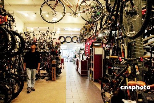 美國經(jīng)濟不景氣,不但催熱了二手商品店和打折網(wǎng)站,也火了自行車行。紐約中城三十四街一家自行車行里,小小兩百平米,擺了不下八十輛自行車。店員說,上個月天氣更暖和的時候,店里平均每天能賣二十輛自行車,“這可是以前不多見的”。五百美元左右的中等價位車最受歡迎,買車人的人不少就在附近的寫字樓里上班。中新社發(fā) 魏晞 攝