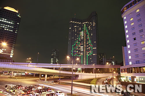 11月6日晚,日本首都東京一家酒店外墻用燈光組成一個(gè)高約100米的大型“圣誕樹(shù)”,以迎接即將到來(lái)的“圣誕節(jié)”。