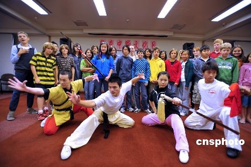 圖為中美小朋友“零”距離觀看中國功夫。