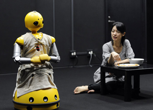 11月25日,在日本大阪大學(xué),一個(gè)取名為若丸的機(jī)器人與一名女演員同臺(tái)表演。當(dāng)天,這臺(tái)時(shí)長為20分鐘的演出由機(jī)器人與演員共同完成,該劇有可能于明年公演。