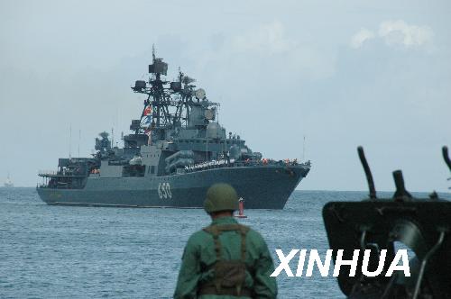 11月25日,俄羅斯“恰巴年科海軍上將”號大型反潛艦駛?cè)胛瘍?nèi)瑞拉北部港口拉瓜伊拉。俄羅斯總統(tǒng)梅德韋杰夫訪問委內(nèi)瑞拉前夕,四艘軍艦組成的俄羅斯北方艦隊艦艇編隊25日抵達拉瓜伊拉,準(zhǔn)備參加與委內(nèi)瑞拉海軍從12月1日開始的聯(lián)合軍事演習(xí)。新華社記者張笑然攝