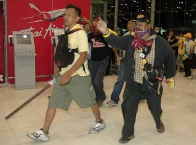 泰國(guó)反政府的人民民主聯(lián)盟(民盟)25日繼續(xù)在曼谷舉行大規(guī)模示威活動(dòng),示威者堵塞通往曼谷國(guó)際機(jī)場(chǎng)的高速公路并沖入機(jī)場(chǎng)大樓。最新消息指稱(chēng),機(jī)場(chǎng)已于晚間被迫關(guān)閉,航班全部取消。
