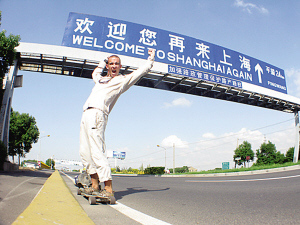 在來到瑞士之后,托馬遜感覺到騎車太乏味,于是靈光乍現(xiàn),決定用一塊4輪滑板代步。按照托馬遜的原計劃,他打算從英國直飛新西蘭回國?墒堑竭_英國后,他卻深深地迷戀上了滑板運動,決定“一滑到底”。據了解,托馬遜每天背著15公斤重的背包,平均每天滑行5到7小時,由于風向和路況不同,每天行程60到120公里不等。結束了長達7000公里的歐美之行后,他開始朝著旅途的最后一站——中國進發(fā)。他從哈薩克斯坦邊境滑進中國境內的新疆西北部,然后又經過青藏高原,最后來到繁華的大上海。