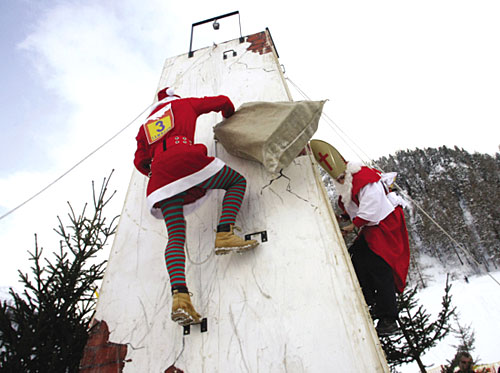 日前,瑞士阿爾卑斯山東部的一個村莊,一年一度的“圣誕老人全國錦標賽”正在如火如荼地舉行著。來自世界各國的15支參賽隊伍紛紛使出渾身解數(shù)。這次的比賽項目包括了攀爬煙囪以及驢子競賽等。在比賽過程中,參賽者們必須打扮成圣誕老人的模樣,身上還要背個裝滿禮物的麻包袋。