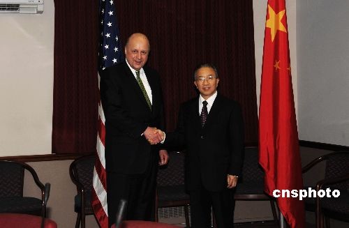 第六次中美戰(zhàn)略對話當?shù)貢r間12月15日在華盛頓舉行,中國國務(wù)委員戴秉國與美國常務(wù)副國務(wù)卿內(nèi)格羅蓬特共同主持會談。圖為戰(zhàn)略對話開始前,戴秉國與內(nèi)格羅蓬特面對媒體握手。中新社發(fā) 邱江波 攝