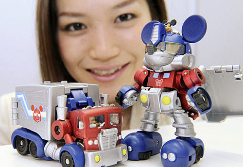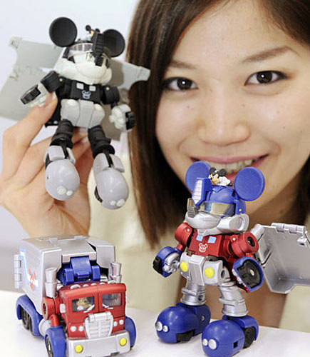 2月2日,在日本首都東京,Tomy玩具公司的一名員工展示“變形金剛”版的經(jīng)典動畫角色米奇。這種“變形金剛”版米奇可以從一輛卡車變成米奇的樣子,有黑白和彩色兩款,將于2月26日上市。