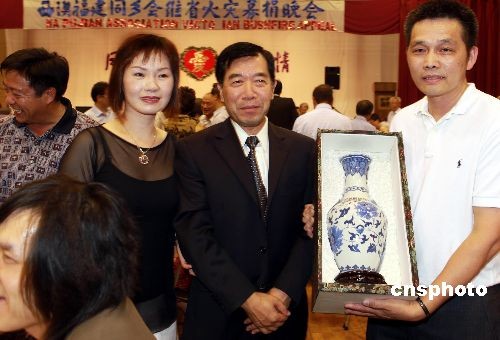 2009年2月15日,西澳中華會(huì)館文化中心,三百多位來自13個(gè)華人社團(tuán)的各界華人聚集一堂,舉辦“風(fēng)火無情人間有情”募捐晚會(huì),為澳大利亞維多利亞州遭受2月7日起發(fā)生的嚴(yán)重山火災(zāi)害的災(zāi)民募捐。中國駐澳大利亞珀斯總領(lǐng)館李樹鋼總領(lǐng)事、西澳洲議長邁克沙德蘭、珀斯市議員劉怡心、捷拉等官員到場(chǎng)支持。中新社發(fā) 高周丹 攝