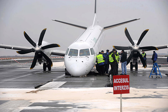 這架五十座SAAB2000型小型客機屬于羅馬尼亞喀爾巴阡山航空公司,當天早上從摩爾多瓦首都基希訥烏起飛,原定于當地時間八點降落。當發(fā)現(xiàn)起落架出現(xiàn)故障后,客機開始在機場上空盤旋,以消耗油料,為迫降作準備。同時,地面人員往跑道上噴灑防火泡沫,機場方面還調集了二十輛消防車和救護車準備救援。在長達一小時四十多分鐘的空中盤旋后,飛機最終成功迫降。旅客目前已全部離開飛機,且未發(fā)現(xiàn)有人受傷。