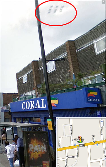 《太陽報》報道,近日,谷歌“街景”工具拍下一組神秘照片,9個排列整齊的銀色半球體飛行物盤旋在倫敦東部的上空。這組照片一經(jīng)曝光,立即引起社會各界的密切關(guān)注。