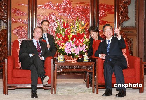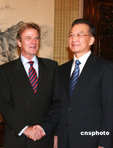 十月三十一日,中國(guó)國(guó)務(wù)院總理溫家寶在北京會(huì)見法國(guó)外交部部長(zhǎng)貝爾納·庫什內(nèi)。中新社發(fā) 廖文靜 攝