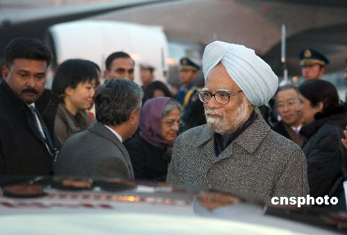 一月十三日,印度總理辛格乘專機(jī)抵達(dá)北京首都國(guó)際機(jī)場(chǎng),開(kāi)始訪華之旅。中新社發(fā) 盛佳鵬 攝