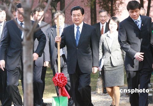 胡錦濤為中日青少年友好交流年活動(dòng)植樹(shù)