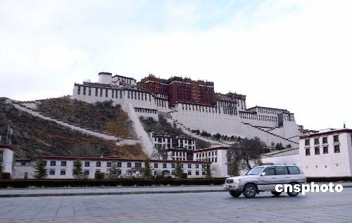 3月19日,一輛汽車駛過(guò)拉薩布達(dá)拉宮廣場(chǎng)。目前,拉薩市區(qū)各個(gè)路段車輛自由通行,大部分商店恢復(fù)營(yíng)業(yè),高校以及中小學(xué)正常上課,社會(huì)秩序基本恢復(fù)正常。中新社發(fā) 廖攀 攝
