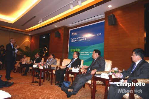 2008年4月11日-13日,博鰲亞洲論壇2008年年會(huì)在海南博鰲召開,本屆年會(huì)的主題為"綠色亞洲:在變革中實(shí)現(xiàn)共贏"。11日晚上,"媒體看亞洲"分論壇在博鰲國(guó)際會(huì)議中心舉行,中國(guó)國(guó)務(wù)院新聞辦公室副主任王國(guó)慶、鳳凰衛(wèi)視控股有限公司董事局主席兼行政總裁劉長(zhǎng)樂、《新財(cái)富》雜志總編輯鄭頌、彭博資訊電視記者安允文、《時(shí)代周刊》亞洲出版總監(jiān)艾倫·蘭漫、MTV全球電視網(wǎng)大中華區(qū)董事總經(jīng)理(維亞康母公司中國(guó)區(qū)首席代表)李亦非等多位重量級(jí)媒體嘉賓參與了這場(chǎng)對(duì)話。中新社發(fā) 關(guān)向東 攝