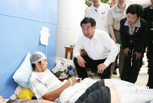 回良玉趕赴綿陽災(zāi)區(qū)察看災(zāi)情 看望受災(zāi)群眾