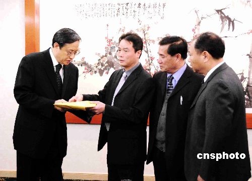 華盛頓福建同鄉(xiāng)會(huì)、華盛頓美國(guó)福建同鄉(xiāng)聯(lián)合會(huì)和華盛頓福建侯嶼聯(lián)誼會(huì)等福建僑社積極捐助四川地震災(zāi)區(qū),贏得中國(guó)駐美大使周文重的高度贊揚(yáng)。圖為五月二十日華盛頓福建侯嶼聯(lián)誼會(huì)的代表在中國(guó)駐美國(guó)大使館向周文重遞交給地震災(zāi)區(qū)的捐款。