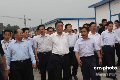 圖:吳邦國在都江堰安置點(diǎn)看望受災(zāi)民眾
