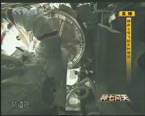 9月27日下午16時15分,航天員翟志剛在軌道艙做準備,16時30分前后他將進行出艙活動