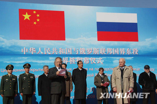 10月14日,中俄雙方在黑瞎子島舉行中華人民共和國與俄羅斯聯(lián)邦國界東段界樁揭幕儀式。兩國邊防部隊已開始按雙方勘定的國界線履行防務。