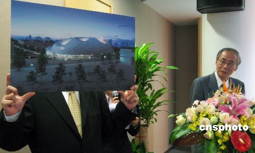 十月二十八日,上海世博會(huì)日本展區(qū)總代表、日本國(guó)經(jīng)濟(jì)產(chǎn)業(yè)省顧問(wèn)塚本弘(右)在上海公布中國(guó)2010年上海世博會(huì)日本館方案。上海世博會(huì)日本館以“心之和、技之和”為主題,展館占地面積達(dá)六千平方米,比照以往日本赴海外參展世博會(huì)的建設(shè)案例,上海世博會(huì)日本館的展出規(guī)模之大,可謂史無(wú)前例。中新社發(fā) 許曉青 攝