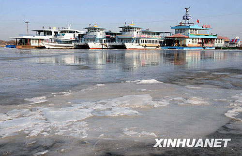 11月16日,哈爾濱市輪渡公司的所有渡客船全部安全返航,停泊在哈爾濱市道里區(qū)九站船塢。當日,哈爾濱市輪渡公司渡客408船帶著碼頭船,從哈爾濱市道外碼頭返回到道里九站船塢,這標志著運行在松花江上的所有客貨輪全線停航。據(jù)了解,受寒冷空氣影響,松花江沿線氣溫驟降,江水開始結冰進入封江期。 新華社發(fā)(張清云 攝)
