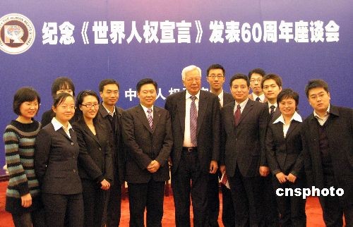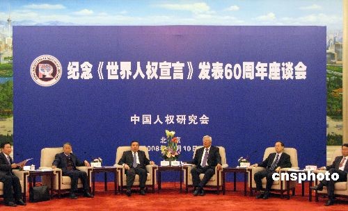 12月10日下午,中國(guó)人權(quán)研究會(huì)在北京人民大會(huì)堂舉行座談會(huì),紀(jì)念《世界人權(quán)宣言》發(fā)表60周年。中新社發(fā) 孫自法 攝