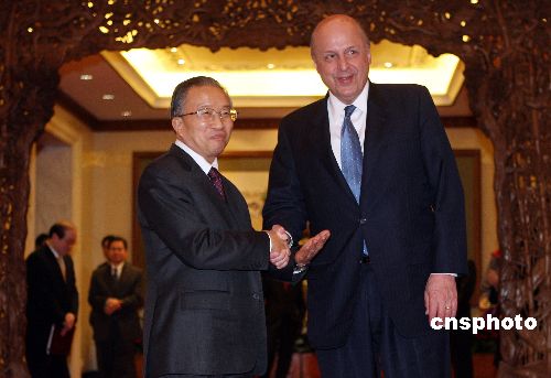 1月7日晚,中國(guó)國(guó)務(wù)委員戴秉國(guó)在古色古香的北京釣魚(yú)臺(tái)國(guó)賓館會(huì)見(jiàn)前來(lái)參加慶祝中美建交30周年活動(dòng)的美國(guó)副國(guó)務(wù)卿內(nèi)格羅蓬特一行。中新社發(fā) 任晨鳴 攝