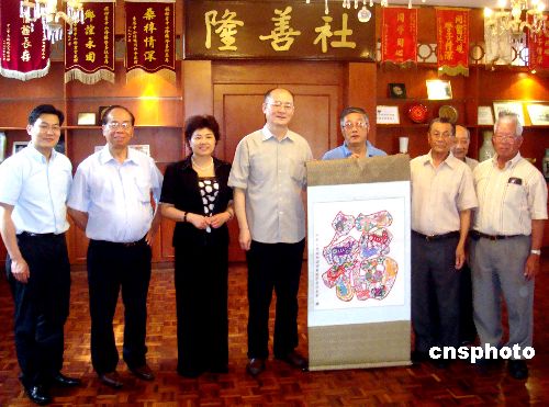 當(dāng)?shù)貢r間2月2日,率領(lǐng)“文化中國 四海同春”藝術(shù)團一行訪問南美的國務(wù)院僑辦副主任、中國海外交流協(xié)會副會長趙陽,在秘魯首都利馬走訪僑社,了解僑情,參觀了具有一百多年歷史的中山隆鎮(zhèn)隆善社和同升會館。圖為趙陽向秘魯中山隆鎮(zhèn)隆善社贈送禮品。中新社發(fā) 劉以謙