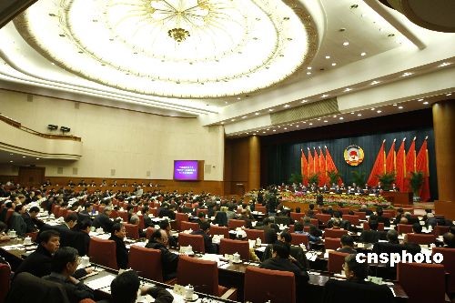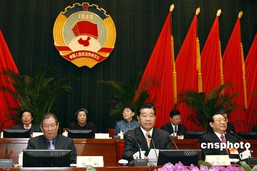 2月25日,政協(xié)第十一屆全國(guó)委員會(huì)常務(wù)委員會(huì)第四次會(huì)議在北京開(kāi)幕,全國(guó)政協(xié)主席賈慶林出席并主持會(huì)議。會(huì)議將聽(tīng)取和討論有關(guān)即將召開(kāi)的全國(guó)政協(xié)十一屆二次會(huì)議事項(xiàng)、審議通過(guò)有關(guān)議程和報(bào)告等。中新社發(fā) 盛佳鵬 攝