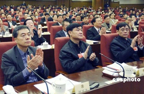 3月11日,政協(xié)第十一屆全國(guó)委員會(huì)常務(wù)委員會(huì)第五次會(huì)議在北京舉行,全國(guó)政協(xié)主席賈慶林出席并主持會(huì)議。會(huì)議通過(guò)政協(xié)第十一屆全國(guó)委員會(huì)第二次會(huì)議關(guān)于常務(wù)委員會(huì)工作報(bào)告的決議(草案),審議通過(guò)政協(xié)第十一屆全國(guó)委員會(huì)提案委員會(huì)關(guān)于政協(xié)十一屆二次會(huì)議提案審查情況的報(bào)告(草案),通過(guò)政協(xié)第十一屆全國(guó)委員會(huì)第二次會(huì)議政治決議(草案)。圖為與會(huì)委員鼓掌祝賀決議(草案)通過(guò)。中新社發(fā) 盛佳鵬 攝