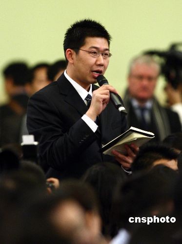 3月13日上午,溫家寶總理舉行中外記者招待會(huì)。中國(guó)新聞社記者、中國(guó)新聞網(wǎng)記者翁陽(yáng)在發(fā)布會(huì)上向溫家寶總理提問(wèn)。中新社發(fā) 杜洋 攝